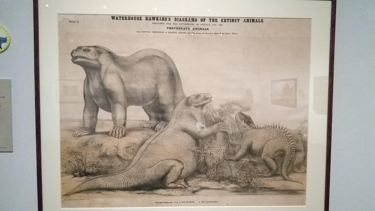 19世紀の復元は太古のぬめぬめとした爬虫類のイメージや,哺乳類チックな復元になる.このあたりは黎明期というに相応しい.最初のイグアノドンの復元は水晶宮に大きな模型が作られたことでもとても有名だ.